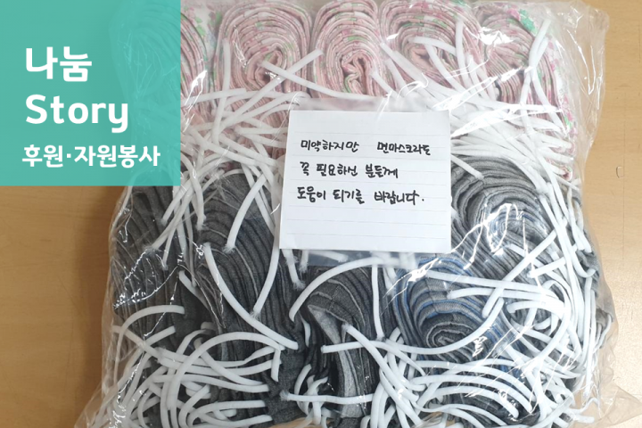 코로나-19에 따른 구호키트 지원 2020-04-09 조회수 15,512 마스크DIY 재능기부 캠페인 결과 2020-04-09 조회수 12,870 타국에서 溫 사랑(나눔실천) 2020-04-09 조회수 13,131 한국수자원공사 팔당권지사와 함께하는 '코로나-19 긴급구호키트 지원 사업 2020-04-07 조회수 15,243 복지관 미션, 비전 & 인재상 회의 2020-04-02 조회수 14,842 홀트아동복지회X하남시종합사회복지관, 코로나19 위기극복 생필품 지원 2020-03-27 조회수 13,535 코로나19예방- DIY마스크 키트 제작 2020-03-19 조회수 16,349 면마스크 후원 2020-03-16 조회수 13,136 햄버거 나눔지원사업 '행복배달' 실시 2020-02-25 조회수 11,618