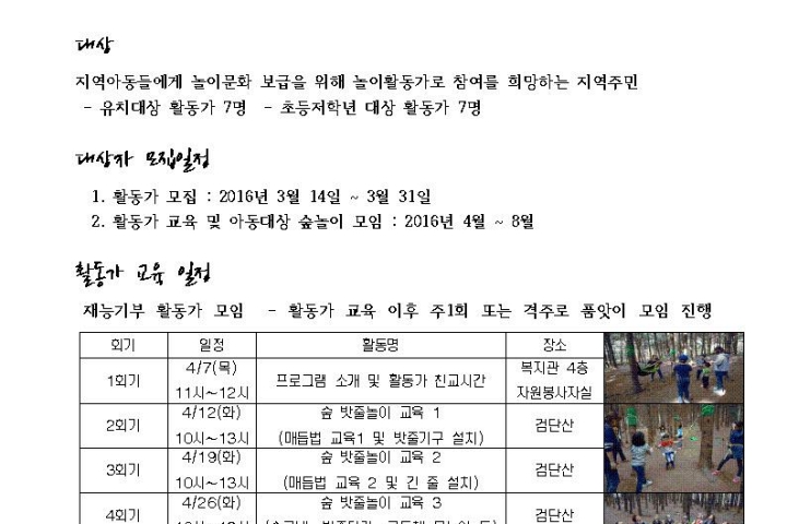 2016년 노인공익활동지원사업 참여자 및 수요처 간담회 실시 2016-04-08 조회수 13,345 2016년 상반기 어르신자원봉사자 보수교육 안내 2016-04-08 조회수 14,324 2016 저소득 가정 건강증진 프로그램 온기종기(溫器悰器) 2016-03-24 조회수 13,502 2016년 노인 공익활동지원사업 합동 발대식 및 활동교육 실시완료 2016-03-23 조회수 14,708 채움놀이터 3기 활동가 모집 2016-03-11 조회수 13,582 2016년 제1차 운영위원회 개최 2016-03-11 조회수 13,759 2015년 겨울방학 늘해랑학교 2016-03-04 조회수 14,690 2016년 신년업무보고 실시 2016-02-24 조회수 14,613 2016 저소득 가정 건강증진 프로그램 온기종기(溫器悰器) 실시 2016-02-22 조회수 13,483