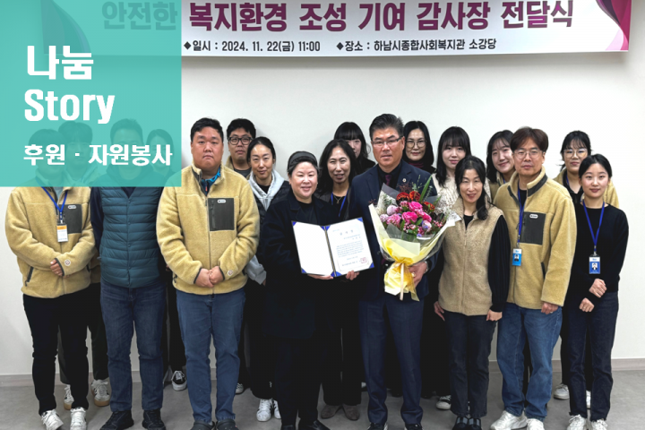 2024 요리체험프로그램 과일청, 크로플 만들기 2024-11-28 조회수 1,903 2024 하남먹거리 '식사는 하셨어요?' (11월 조리봉사 & 배분봉사) 2024-11-27 조회수 1,548 어르신 달걀지원사업(우양재단) 2024-11-27 조회수 1,635 사람과 사람 사이를 잇다 ‘사이사이’ 홍보 및 지역사회 인식 캠페인 진행 2024-11-27 조회수 1,123 2024 꿈디자이너 비전원정대 6회기 실시 2024-11-26 조회수 1,685 경기도의회 윤태길 의원, 안전한 복지환경 조성 기여 감사장 수상 2024-11-25 조회수 1,480 독거노인을 위한 패딩조끼 지원(플레이투게더) 2024-11-22 조회수 1,695 "AP NOW! 적극적 부모역할훈련" 2024-11-15 조회수 1,975 2024 하남시민 행복축제 '걷다, 덕풍천' 현장 스케치 2024-11-15 조회수 1,706
