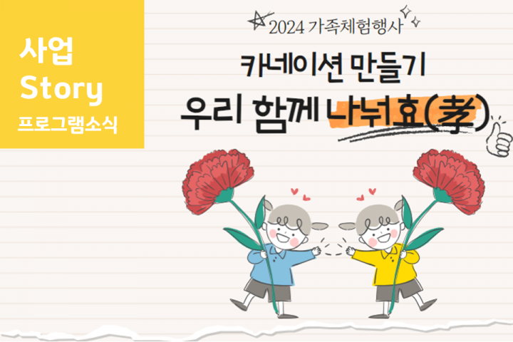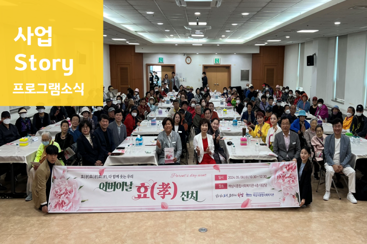 오븐엔조이 지에라반 5월 제과제빵 후원 2024-05-21 조회수 1,630 [오늘은 노는 날! - 1기] 엄마아빠랑 노는 날 진행(4회기) 2024-05-21 조회수 3,257 2024 휠체어 무료대여 서비스 2024-05-20 조회수 6,504 2024년 도담도담 멘토링 오리엔테이션 및 결연식 2024-05-13 조회수 3,221 지역주민동아리 '시링스 팬플롯' 버스킹 진행 2024-05-10 조회수 2,989 2024 가족체험행사 '우리 함께 나눠효(孝)' 2024-05-10 조회수 2,826 [오늘은 노는 날! - 1기] 준비물 없이 노는 날 진행(3회기) 2024-05-10 조회수 3,084 사람과 사람 사이를 잇다 ‘사이사이’ 2차 양성교육 & 정기모임 2024-05-10 조회수 2,118 [2024 가족문화행사 ‘어버이날 효(孝)잔치’ 진행] 2024-05-10 조회수 3,815