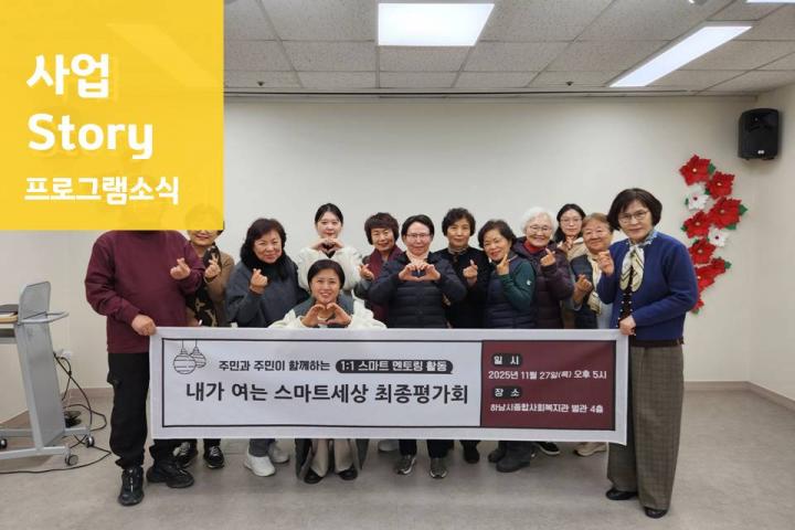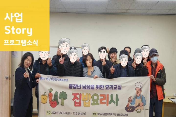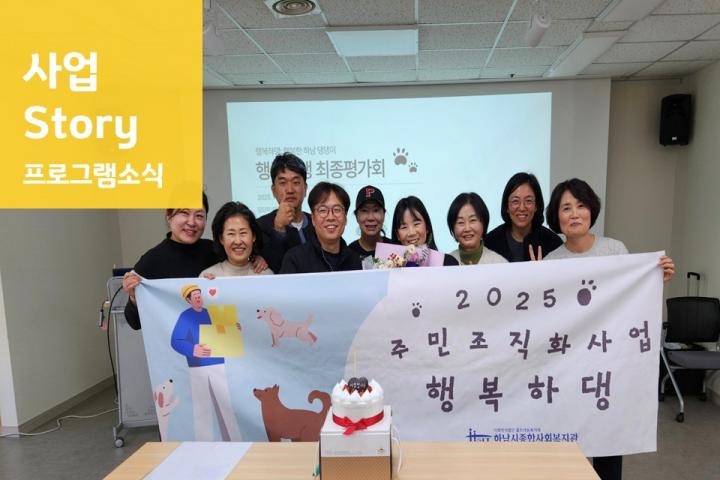 중장년 남성 1인가구 지원 사업 '집밥요리사' 평가회 진행 2025-12-02 조회수 365 2025년 행복하댕: 행복한 하남 댕댕이 11월 정기모임 및 최종평가회 2025-12-01 조회수 402 2025년 내가 여는 스마트세상 최종평가회 진행 2025-12-01 조회수 435 2025 꿈디자이너 보호자모임 5회기 실시 2025-11-29 조회수 248 사례관리 팀스터디 7회기 실시 2025-11-28 조회수 257 중장년 남성 1인가구 지원 사업 '집밥요리사' 11월 2025-11-28 조회수 322 함께나눔 프로젝트: 마음을 잇는 김장김치 나눔 2025-11-27 조회수 365 2025년 아동권리 증진 사업 '오늘은 노는 날!' - 친구랑 같이 노는 2025-11-26 조회수 302 2025 부모 힐링 프로그램 '나만의 그릇 만들기' 2025-11-25 조회수 355