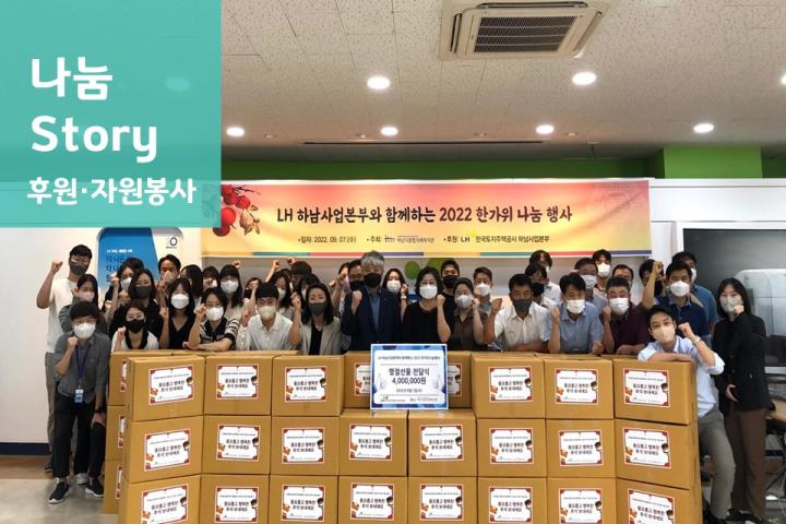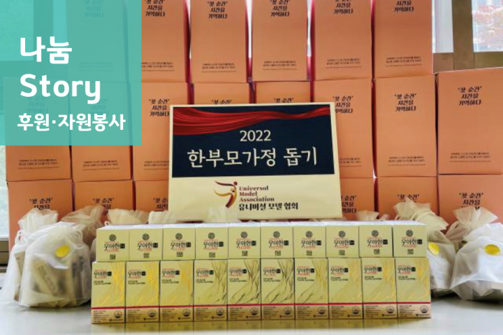 [오늘은 노는 날!-자연에서 노는 날] 1회기 진행 2022-09-19 조회수 7,402 유니버셜 모델협회 한부모가정 후원금 지원 2022-09-14 조회수 6,616 올바로치과의원 상호협력 및 어르신 구강검진 진행 2022-09-14 조회수 7,145 [인성나눔] 홀몸어르신과 우리가족을 위한 상투과자 만들기 진행 2022-09-13 조회수 7,167 한가위 선물 지원(선물세트,이불,백미 등) 2022-09-08 조회수 6,536 LH하남사업본부와 함께하는 2022 한가위 나눔 행사 2022-09-08 조회수 6,447 한국전력공사 동서울전력지사 후원물품 전달 2022-09-08 조회수 6,515 생활개선회 하남시연합회 후원물품 전달 2022-09-06 조회수 7,044 폐현수막 새활용 프로젝트 '보따리' 기후·환경교육 수강 2022-09-05 조회수 7,243