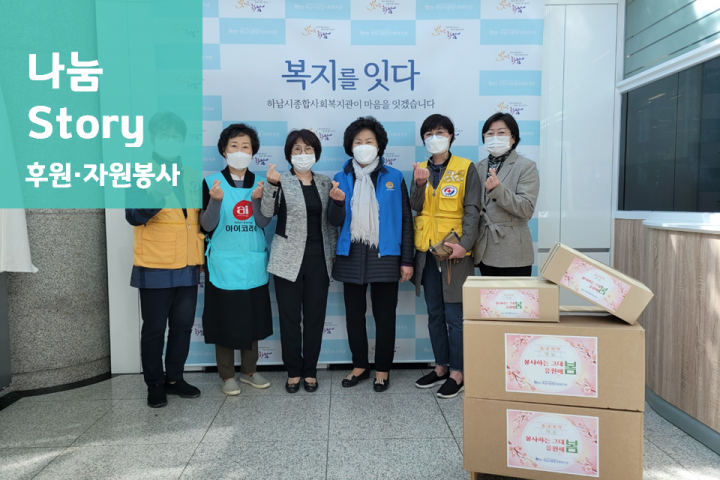 제24회 얘들아놀자 어린이날 행사 진행 2021-05-06 조회수 12,542 2021 꿈나무 나눔실천교실 '꽃 그려봄' 실시 2021-05-03 조회수 12,037 경기먹거리 그냥드림코너 지원사업 지역사회 홍보 2021-04-28 조회수 12,252 핸썸의 온라인 마을공방-1차 진행 2021-04-27 조회수 12,036 후원 15주년 장기후원자 기념액자 전달 2021-04-22 조회수 12,952 저소득 취약계층 밑반찬 지원사업 2021-04-21 조회수 11,184 하남시 봉사단체 (주)동성제약 유산균 전달식 2021-04-16 조회수 11,799 어르신 정서지원 및 건강증진을 위한 '온(溫)기종기' 2021-04-15 조회수 10,664 2021년 도담도담 멘토링 결연식 및 오리엔테이션 진행 2021-04-12 조회수 12,921